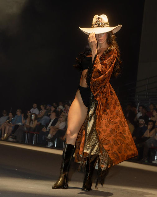 "El Sombrero Alón Aguadeño Colección El Baile de la Vida es un tributo a la elegancia contenida en el movimiento sutil. Confeccionado a mano en palma de iraca 100% natural, combina tradición artesanal con el poder expresivo de los detalles. Su corona está enmarcada por cintas en tonos negro, kaki, marrón y crudo, que crean un contraste atemporal y sofisticado. El protagonismo recae en la aplicación de cristales de gran tamaño en tonos oro rosa, ahumado y transparente, cuidadosamente cosidos a mano, que evocan destellos de luz entre la penumbra de un escenario. Con ala de 12 cm y talla 4 (55 cm de diámetro interno), su ligereza asegura comodidad, mientras que su diseño único lo convierte en una pieza exclusiva ideal para realzar looks veraniegos, eventos sociales o encuentros ecuestres.